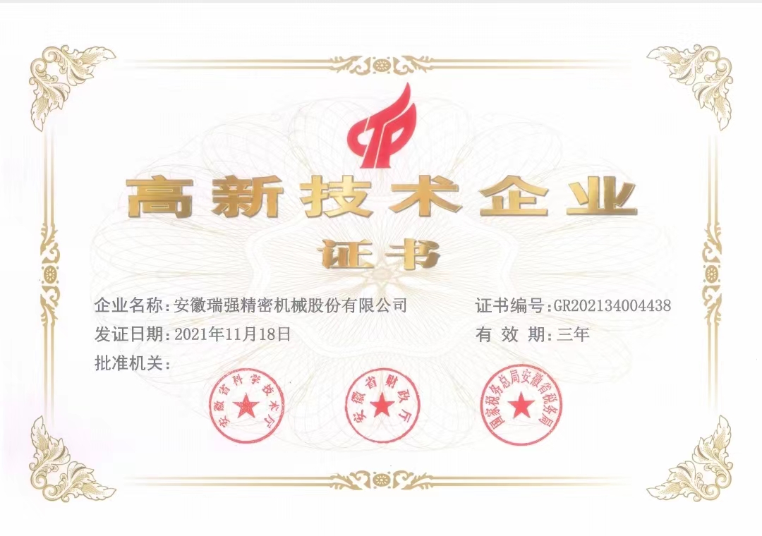 安徽瑞強精密機械股份有限公司,證券代碼:800288 , 2000年8月創(chuàng)立于安徽省蚌埠市高新技術開發(fā)區工業園內,是一家集科研,設計,生產,銷售和系統集成為一體的高新技術企業,公司生產面積5000多平方米,標準化廠房,員工80余名,專業的技術研發(fā)團隊20多人,公司擁有臺灣4軸加工中心,臺灣鉆攻中心,日本三精平面磨,德國微米精密磨刀機,日本二維三維檢測儀,日本進口基恩士VHX-7000N數碼顯微系統等,加工設備與檢測設備120余臺。年產值5千萬元人民幣,憑借在玻璃切割的專業水平和成熟的技術,依靠科技技術發(fā)展,不斷為國內外合作伙伴提供高質量,高精度,高技術,高品質產品,是我們始終不變的追求。 公司自研品牌“瑞玻爾?”(RUIBOER?)擁有35項國家發(fā)明專利,6項商標注冊信息,國家高新技術企業認證,科技型中小企業認證,股交所掛牌企業等官方認證。